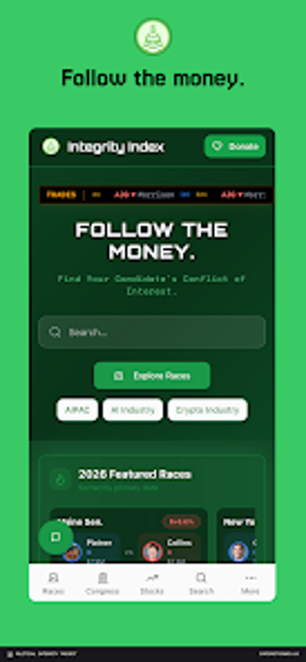 بالإضافة إلى تتبع الشؤون المالية للمرشحين، يبرز مؤشر النزاهة أيضًا أحدث صفقات الأسهم التي قام بها أعضاء الكونغرس. تتيح هذه الميزة للمستخدمين فحص الصراعات المحتملة للمصالح والأنشطة المالية للمسؤولين المنتخبين. كونه تطبيقًا مجانيًا مصنفًا تحت التعليم والمراجع، يعد مؤشر النزاهة أداة قيمة لأولئك المهتمين بتقاطع المال والسياسة.